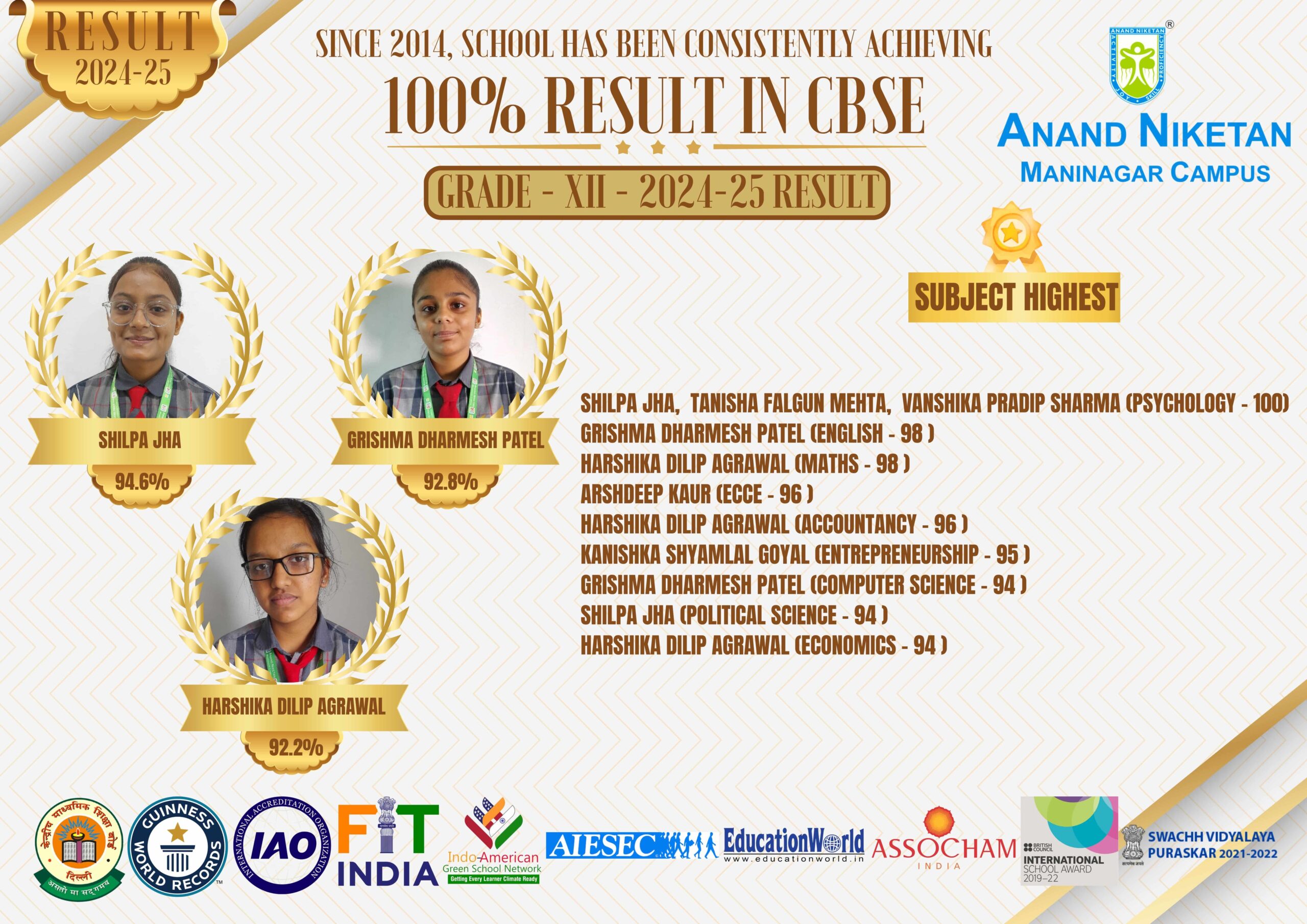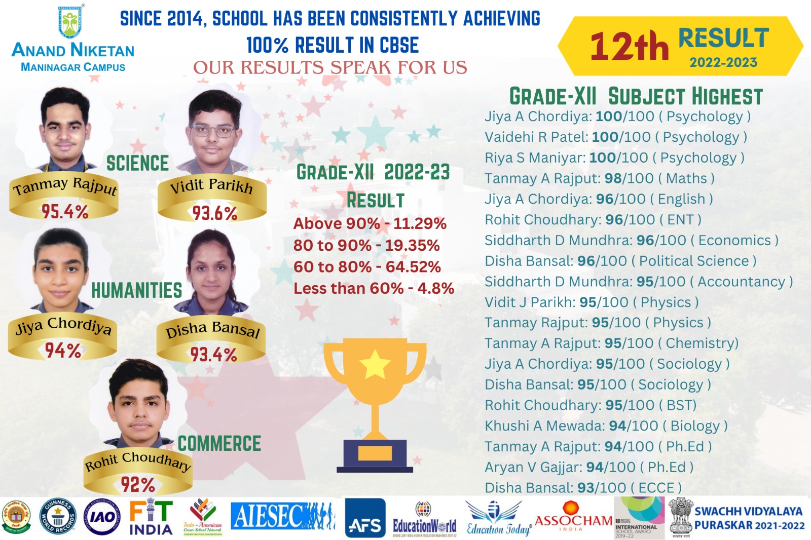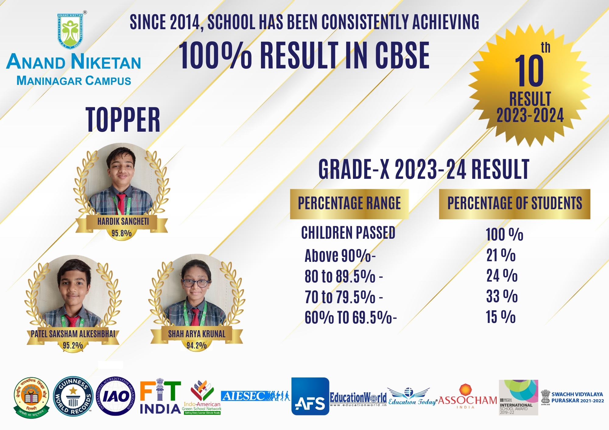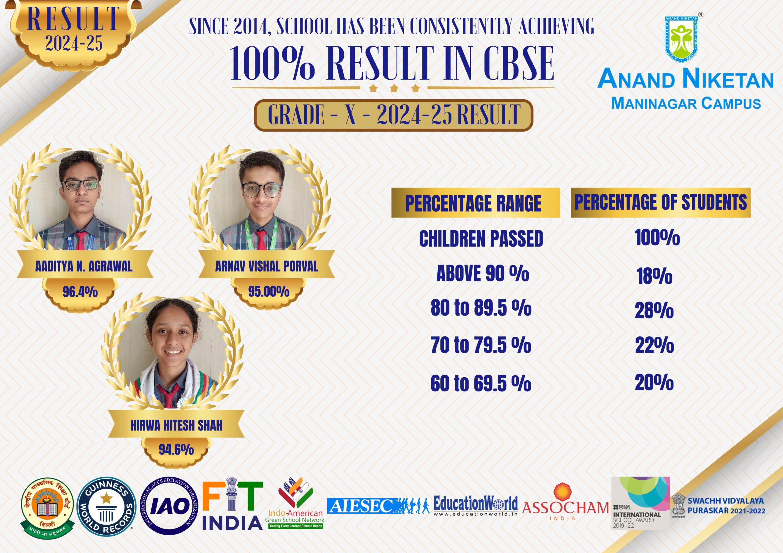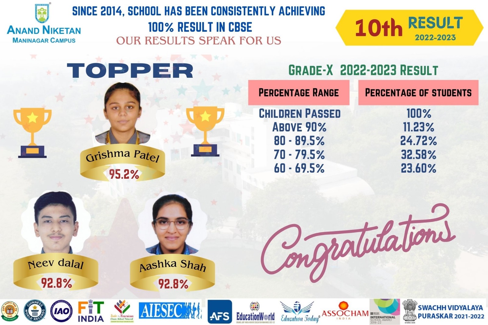 At Anand Niketan Maninagar, we take pride in our students’ exceptional performance across various domains. Our commitment to fostering a dynamic and inclusive learning environment has led to consistently high achievements, reflecting the dedication of both our faculty and students. With a focus on holistic development, we empower our students to excel academically and grow into responsible global citizens.